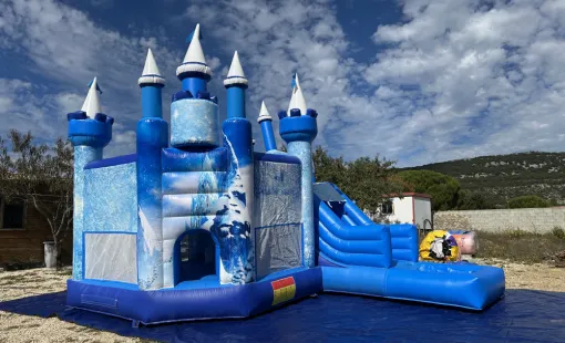 Nouveau dans notre prestations à la location journalièreUne structure gonflable reine de neige de 5mx6mx6m* plateforme trampoline avec ballon souple d...