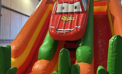 Structure composé de deux tobogans gonflable avec plateforme de récéption Prix de la location journalière TTC compris avec la livraison, le montage e...